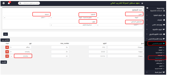 بعد ذلك تقوم المشرفة بتحديد المعايير المطلوبة كما هو موضع في الصورة، ومن ثم النقر على أيقونة بحث.