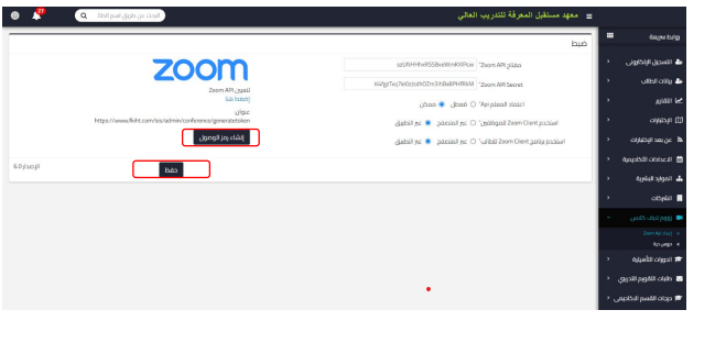 بعد ذلك تقوم المشرفة بالنقر عل ى " إنشاء رمز الوصول" وتسجيل البيانات الخاصة بحساب zoom ومن ثم النقر على " حفظ "